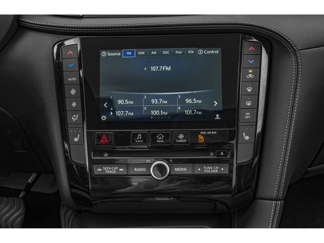 - Radio: AM/FM/CD Audio System -inc: 6 speakers, 4 USB connection ports, Apple CarPlay and Android Auto, dual display system w/upper 8" and lower 7" HD touch screens, INFINITI voice recognition, HD Radio technology, SiriusXM radio w/advanced audio features w/3-month complimentary trial, streaming audio via Bluetooth®, Bluetooth® hands-free phone system, Siri eyes free, hands-free text messaging assistant and active noise cancellation