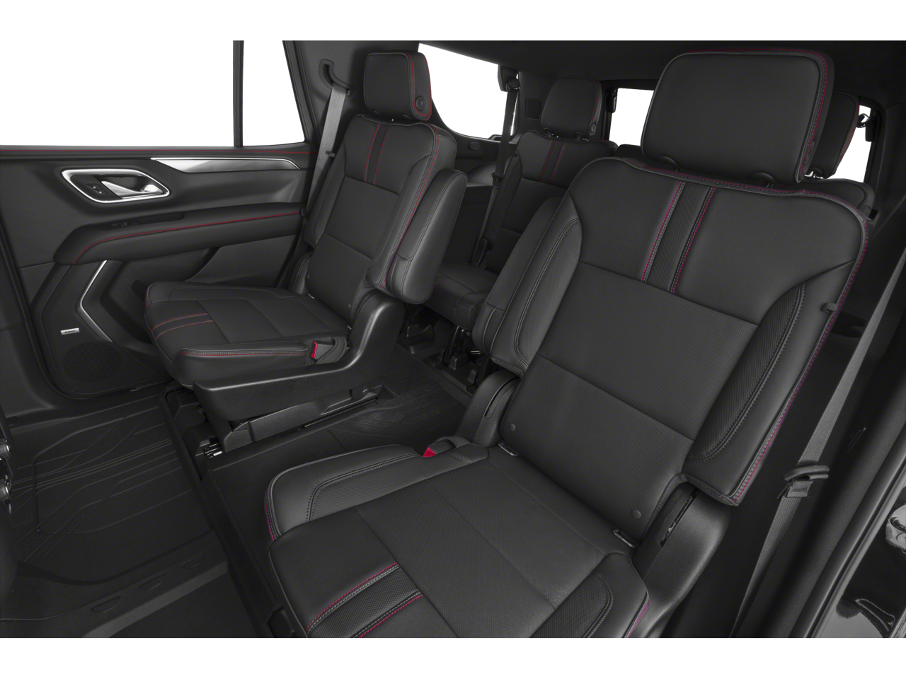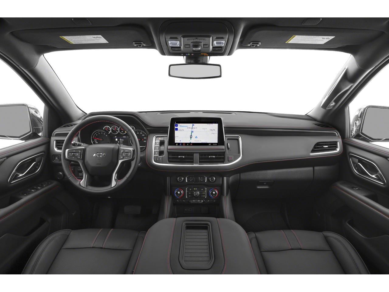 RST PREFERRED EQUIPMENT GROUP includes standard equipment, REAR AXLE, 3.23 RATIO, JET BLACK/VICTORY RED, PERFORATED LEATHER SEATING SURFACES 1ST AND 2ND ROW, GVWR, 7400 LBS. (3357 KG) (STD), ENGINE, 5.3L ECOTEC3 V8 with Dynamic Fuel Management, Direct Injection and Variable Valve Timing, includes aluminum block construction (355 hp [265 kW] @ 5600 rpm, 383 lb-ft of torque [518 Nm] @ 4100 rpm) (STD), BLACK, AUDIO SYSTEM, CHEVROLET INFOTAINMENT 3 PLUS SYSTEM, 10.2" DIAGONAL HD COLOR TOUCHSCREEN AM/FM stereo, Bluetooth® audio streaming for 2 active devices, Apple CarPlay and Android Auto capable, enhanced voice recognition, in-vehicle apps, cloud connected personalization for select infotainment and vehicle settings. Subscription required for enhanced and connected services after trial period. (STD), Wireless charging (Standard on vehicles built before 7-12-2021. Vehicles built on or after 7-12-2021, will have (00C) Not Equipped with Wireless Charging which removes Wireless Charging and its content. See dealer for details. The system wirelessly charges one compatible mobile device. Some phones have built-in wireless charging technology and others require a special adaptor/back cover. To check for phone or other device compatibility, see my.chevrolet.com/learnAbout/wireless-charging or consult your carrier.), Wireless Apple CarPlay/Wireless Android Auto, Wipers, front intermittent, Rainsense.