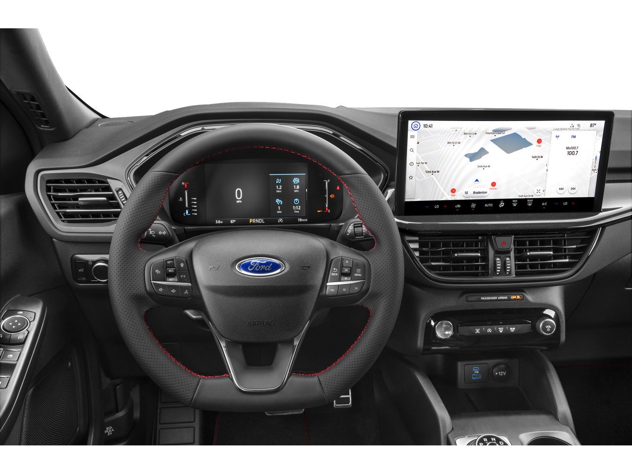 ENGINE: 1.5L ECOBOOST -inc: auto start-stop technology (STD), Wireless Phone Connectivity, Wing Spoiler, Wheels: 18" Rock Metallic Painted Aluminum, Vinyl/Cloth Front Sport Contour Bucket Seats -inc: 8-way power driver seat (includes fore/aft, up/down, power lumbar and power recline), 4-way manual front passenger seat (fore/aft w/manual recline) and red stitching, Valet Function, Trunk/Hatch Auto-Latch, Trip Computer, Transmission: 8-Speed Automatic, Transmission w/Driver Selectable Mode and Oil Cooler. This Ford Escape has a powerful Intercooled Turbo Premium Unleaded I-3 1.5 L/91 engine powering this Automatic transmission.